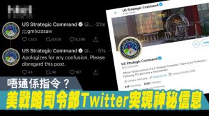 【吃瓜热点】現今資訊科技發達,各國政府部門都開設社交平台帳號與民眾交流及發放即時資訊。其中美國戰略司令部的一篇Twitter不尋常帖文引起網民注意。該帖文附有13個文字及符號,有網民猜測其背後真正意思,甚至笑稱是機密信息。戰略司令部最終發表聲明澄清這個「美麗的誤會」。