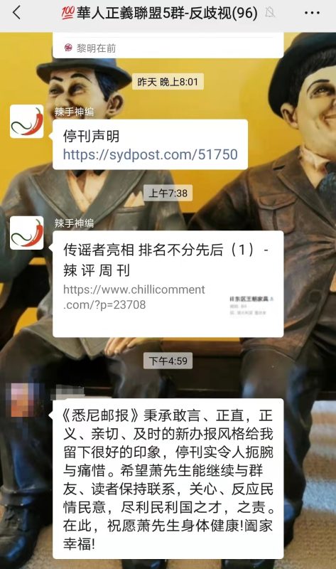 就《悉尼邮报》停刊,不少人不理解,其实主要是笔者感觉身心疲累。办报四年,是非四年。当看到那个谣言截屏,就知道这是一个政治泥沼,没有最黑,只有更黑,笔者就已经萌发去意,没兴趣跟这些暗黑势力玩。