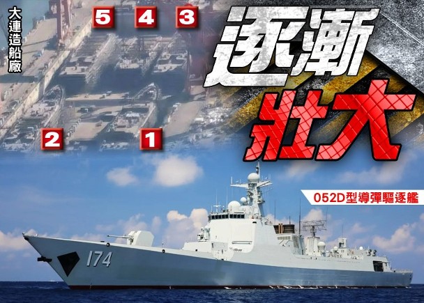 日媒:北京同时建造5驱逐舰 加强向台湾施压