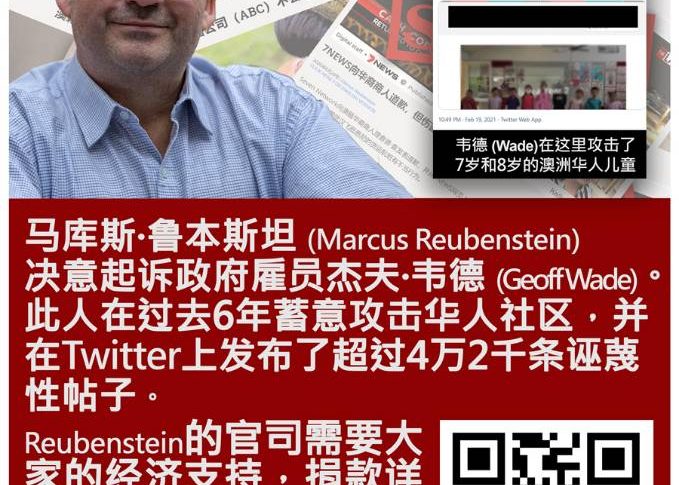 华人正义联盟群组告示: 今天,在微信群留意到一则筹款打官司的图片(如图)。里面介绍,澳洲政府雇员杰夫·韦德(G … 继续阅读 6年4万2千条诬蔑华人帖子!连7岁华童都不放过?告他!!(补充版)