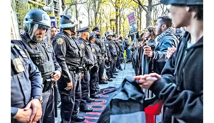Hot U.S. Universities Police Demonstrations, Management Backlash Columbia University Senate Condemns Intervention, Repudiates Damage to Tradition of Academic Freedom in Governance April 28, 2024