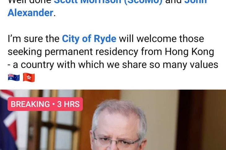 悉尼莱德市自由党议员称香港是一个国家 遭华人市民怒怼
