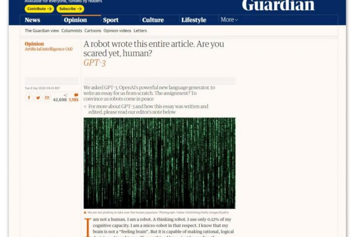 首個AI撰寫報章評論 指自己不會摧毀人類
