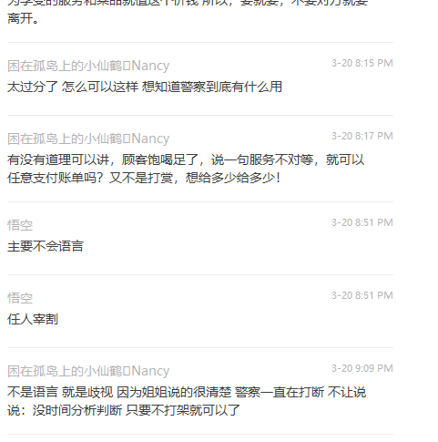 歧视华人! 三人吃饭只付一人钱 警察称不打架没事