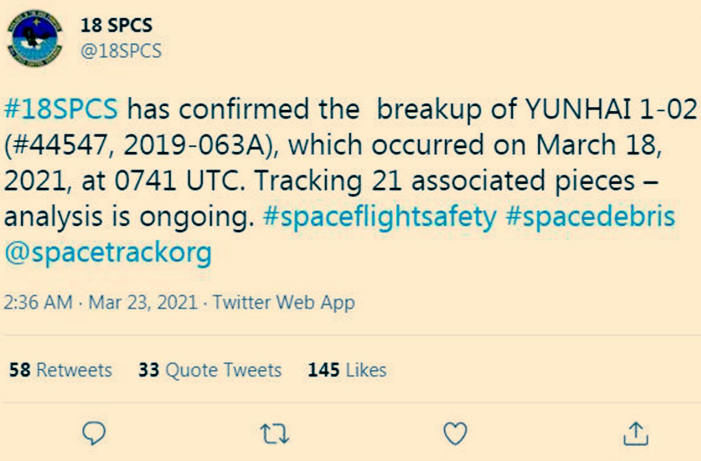 美军确认中国卫星在轨解体 细节暗示原因蹊跷