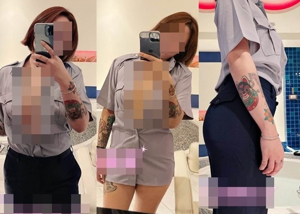 派出所外拍裸照兼穿警察制服解扣自拍 台女发文道歉