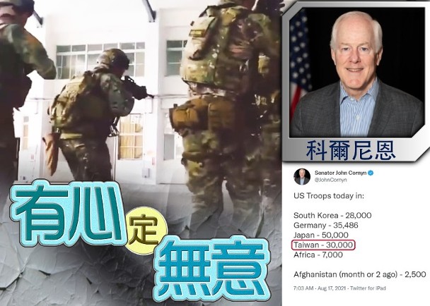 美参议员发文称3万美军驻台 官媒:宣战行为