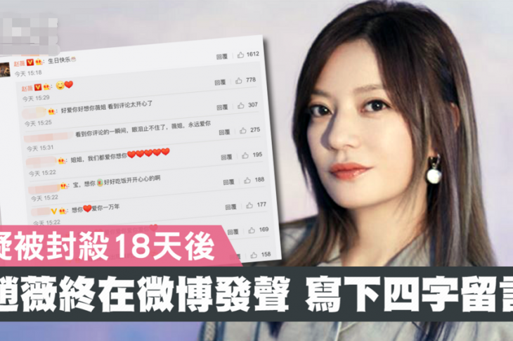 趙薇疑被封殺18天後 首在微博發聲寫下四字留言