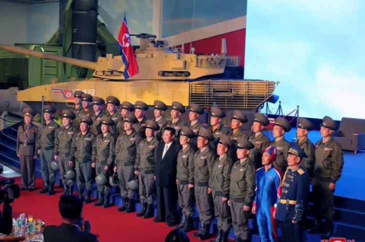 金正恩旁的怪人是誰?一身亮藍色緊身衣引注目 韓網笑譏「人間砲彈」