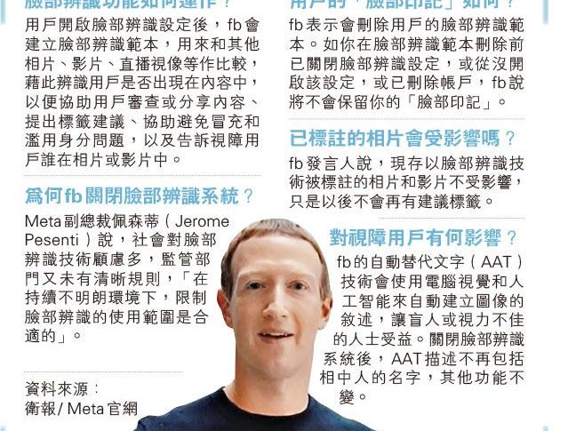 監控疑慮 fb關閉人臉辨識系統 10億用戶「臉部印記」下月前刪除