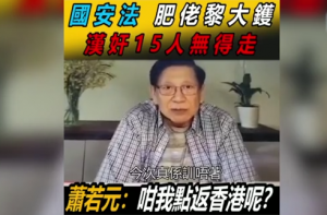 反修例风波去年祸港殃民,因应香港或成为国家安全隐患,全国人大会议议程加入全新的“港版国安法”,曾扬言移居台湾的网台负责人萧若元在网台称,担心立法后自己未能回港,更自爆壹传媒黎智英及李柱铭等人“无得走 ”,自己亦有可能“返唔到香港,要永远流浪天涯 ”。