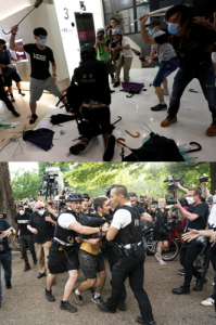 现象:美国出现示威者被警察枪杀的事件,也有记者被捕,被殴打