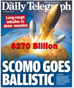 澳洲网友一质问,(这是)自由党政府的经济刺激政策?未来10年里花$2700亿纳税人钱买军购。相当于澳洲所有人,无论大小,是否纳税,平均要在未来的10年里贡献$10,800。这样的决定你认同吗?并自嘲:为了买这些导弹放烟花,澳洲人今后三代都要用烂铜丝上网,并且乘坐上世纪90年代的火车了。