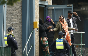 圖為7月6日,墨爾本強制封鎖的大廈之一,有居民嘗試外出時被守衛的警方攔截。受影響居民除緊急需要外,被禁止外出。(Reuters)