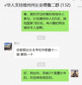 昨日,在旗下各群发布组建【华人时事火辣网】{高手在民间华人观天下}微信聊天转播群消息。把网民关于热点时事聊天吃瓜的讨论发到本网,并邀请关心时事,喜欢评论时事的各地华人参与,有兴趣的网友请@本人进群。结果吸引了新西兰,中国以及澳洲三国的网民报名加入。