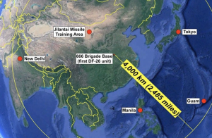 而就高超音速武器的具體應用來說,解放軍當前列裝的東風-26等導彈也在逐漸改變遊戲規則。這種射程4,000公里左右的中程彈道導彈讓中國在西太平洋逐漸具備「反介入/區域拒止」(A2/AD)能力。