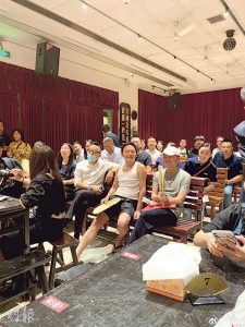 圖- 阿里巴巴創始人馬雲周六(12日)晚現身長沙街頭,不少市民發現後圍觀拍照。9月12日晚,馬雲(前右一)手持蒲扇等位食飯,手持蒲扇的文和友老闆文賓(前右二)及興盛優選老總岳立華(前右三)陪同。(網上圖片)