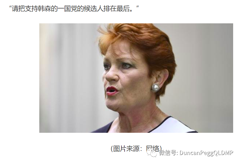 “请把支持汉森的一国党候选人排在最后。”