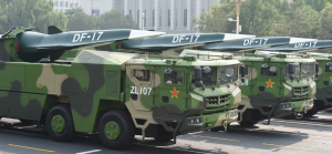 東風-17導彈是一款高超音速武器,於2019年10月1日中國國慶70周年閲兵典禮上首度亮相,被認為是中國反介入/拒止戰略武器的一環。公開資料顯示,東風-17射程在1,800-2,500公里之間。這種類型的導彈可以數倍於音速的速度做規避動作,飛行過程中可以轉換攻擊目標,突破反導彈攔截系統,對目標實施精確打擊,甚至投放核武器。