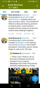 另外,在莫里森发给拜登贺文之前,莫里森总理的推文大谈一场球赛赛果,完全给人一个不像总理的样子。给人看来,这个总理的心根本没把工作放在心上,可拿着却是全球前列的高薪。