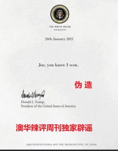 昨天,网上流传一封特朗普离开白宫时按照传统留给拜登的信。现在基本确认网上流传的信是伪造。