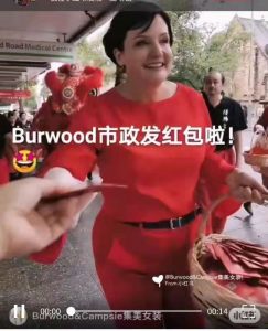 新州工党领袖及州议员麦基(Jodi Mckay MP)在2月13日大年初二,走访悉尼华人大区BURWOOD市(宝活),身穿喜庆应节的红衣裳,沿街大派红包,还有舞狮跟随,喜庆气氛十足。