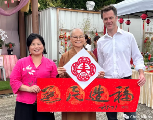 在妙尧法师的带领下,柯民思州议员参与了新春祈福。柯民思州议员表示,这次到访让他更多认识了佛教,更加深入地了解了南天寺和佛光会。他感谢南天寺和佛光会一直以来对社区的付出和奉献,特别是在新冠疫情中,感谢华人发挥了积极作用,为社区居民提供精神支持。