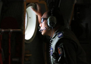 24架军机袭扰台湾前夕,台海空军才监测首度穿越台湾海峡的南昌号万吨大驱。图为台空军慢速机监测海上目标的景况。(台湾军事部门提供)