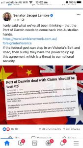 而达尔文港成为联盟党政府的下一个毁约目标还真不是空穴来风(笔者去年同样有预测,只是时间点无法确认)。澳洲国会有参议员昨天已经发文,剑指达尔文港了。