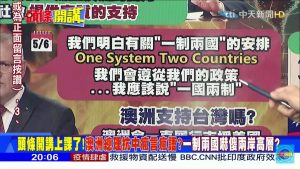 政治风波首先延至台湾,8日,台湾电视节目以“抗中抗到疯?澳总理提一制二国!吓傻台海两岸!。。。”为题,评论事件。