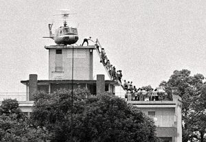 一九七五年美軍敗走西貢,最後倉皇撤退的時刻,驚險重重。由於越共部隊已經兵臨城下,即將攻破首都保衛戰的最後防線,美軍安排直升機在大使館的屋頂上,撤走官員與越南人職員。這一幕在國際媒體上廣為傳播,成為歷史的定格。