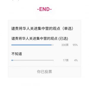 笔者认为,在节目的引导下,树立了对华战争的“正当性”,为澳洲将来的“穷兵黩武”提供了藉口;也在节目主持人的引导下,在澳华人躺着中枪,将在澳华人战时被“送进集中营”合理化。请问,为何澳中开战,华人就要送到集中营?澳中开战,是政客的决定,不是在澳华人的决定,跟华人有什么关系?