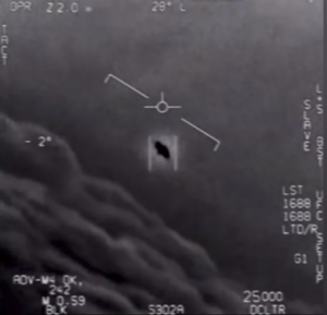美國海軍飛行員拍攝到、流傳多年的影片截圖,疑似是幽浮。(法新社)
