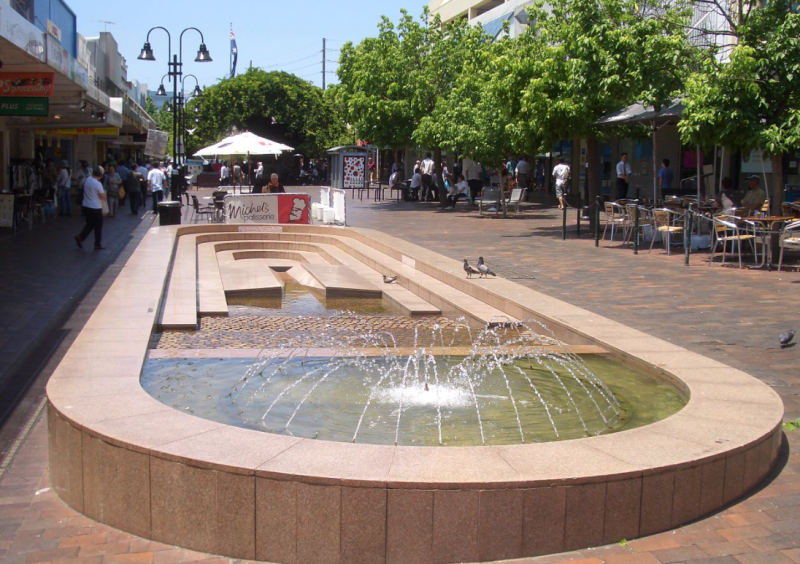 图:Eastwood罗街购物中心(Rowe Street Mall)标志性的露天喷泉