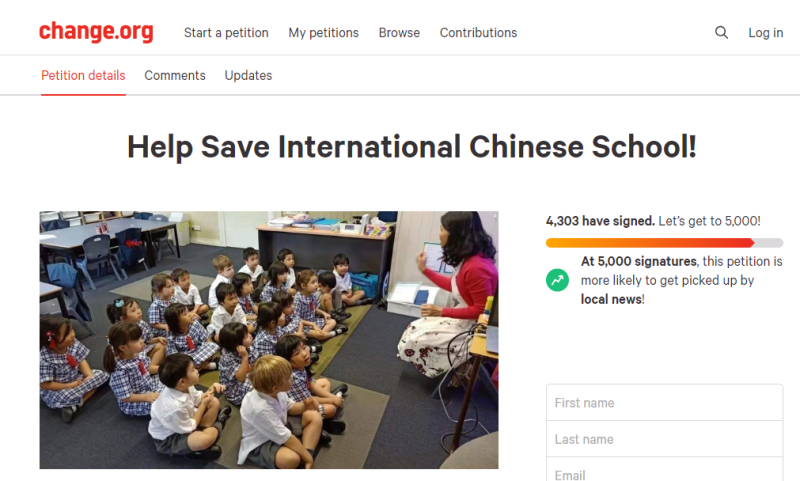 有关当地居民发起请愿的网站链接,呼吁帮助拯救国际中文学校!