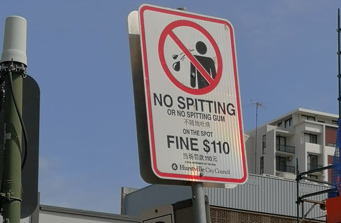 这些路牌布满整条主街,给路人,游客树立了华人是不讲公共卫生的族裔形象。看来,去过Hurstville的游客,购物者都以为华人各个都是“随便吐痰”的人了。