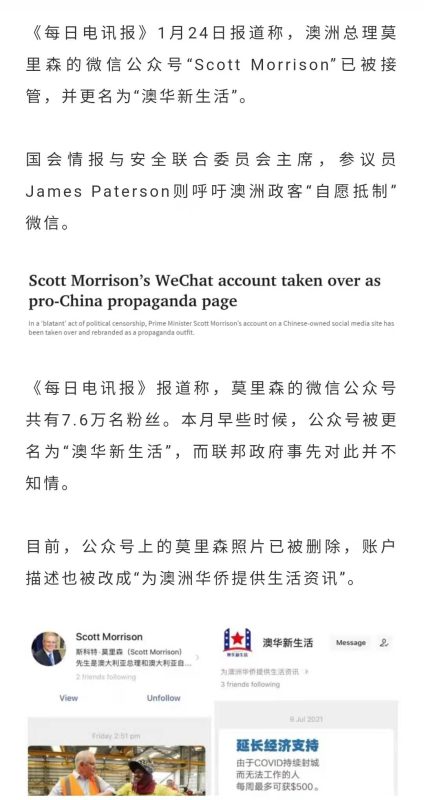 根据《每日电讯报》透露,涉事方为莫里森团队,运作公众号的中国机构,公众号持有人。
