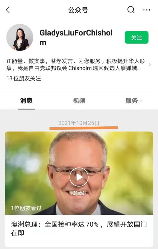 莫里森的微信公众号被易手,被莫里森政府升级为外交问题,定为中国干涉澳洲选举政治。众议员廖婵娥以及一些高官于是呼吁抵制微信。