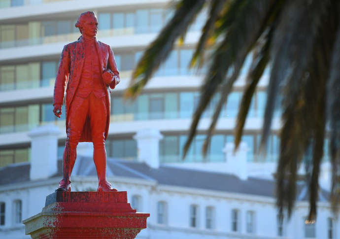 墨爾本的庫克船長紀念碑在澳洲日遭破壞,從銅像頭部到基座都被潑上紅色油漆。