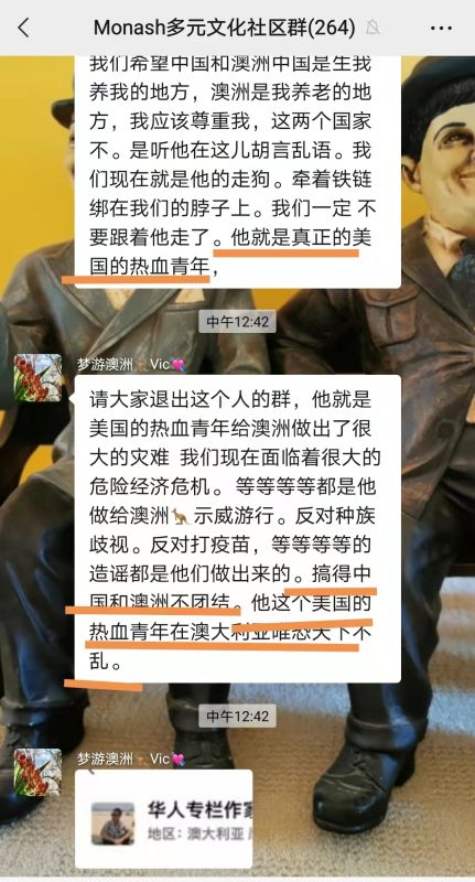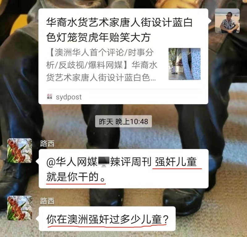 网友2:大家都是生活在澳洲的华人,就不能文明用语吗?作为普通吃瓜群友我觉得这么做很败坏好感