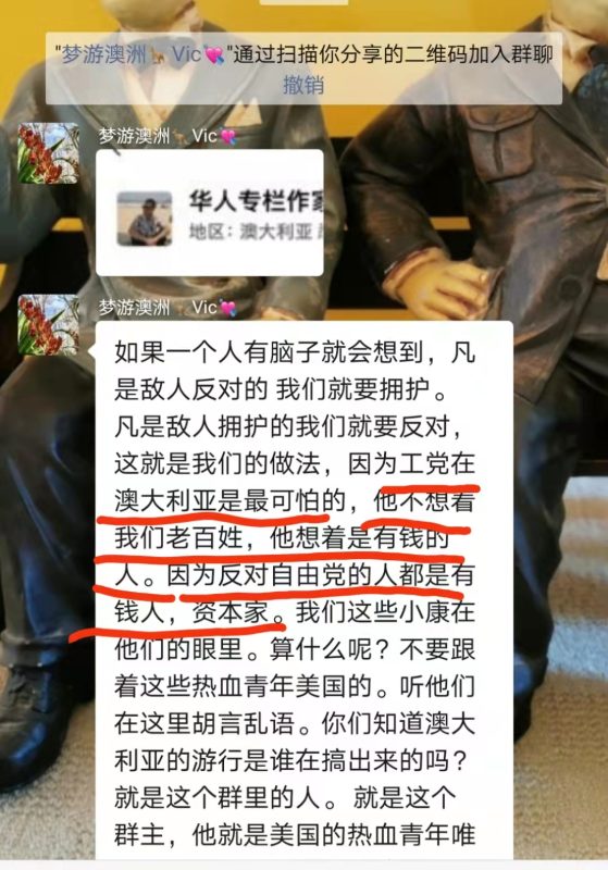 其诉求:要人退出本媒体的群。暴露墨尔本团伙的举止的真正目的和用心–惧怕本媒体和笔者。