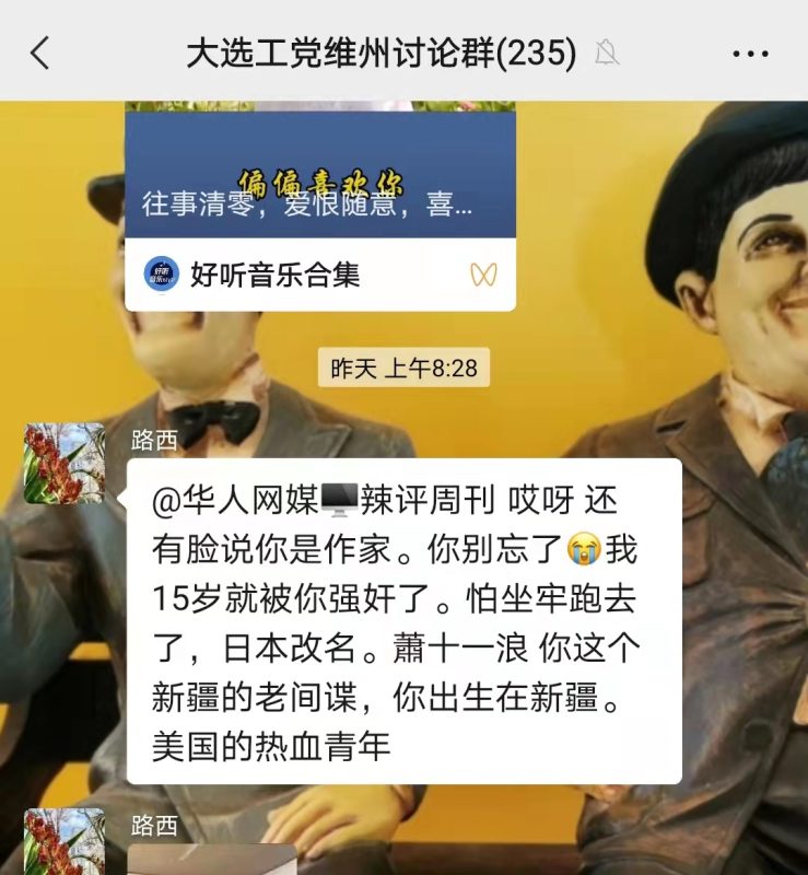 造谣笔者是美国人。注:该群纵容造谣诋毁,是此女主阵地,,挂羊头卖狗肉,践踏“多元文化”
