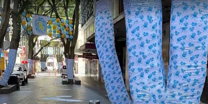 华裔水货艺术家唐人街设计蓝白色灯笼贺虎年贻笑大方