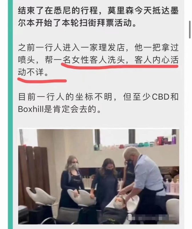 焦头烂额莫里森 墨尔本发廊帮人“洗头” 被网友指“咸猪手”