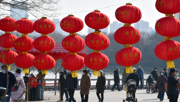 春节的发源地,中国街道自然也是喜庆气氛十足。