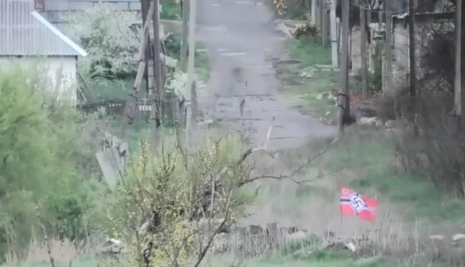 在乌克兰军队与乌东部队对峙的阵地,乌克兰军队阵地还有插着纳粹军旗的(下图)。