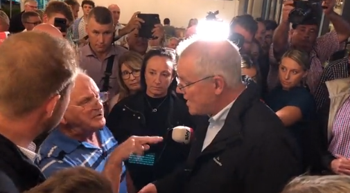 图为近日有选民当面怒骂莫里森,反映出广大澳洲人的心声,给莫里森连任之路蒙上阴影。