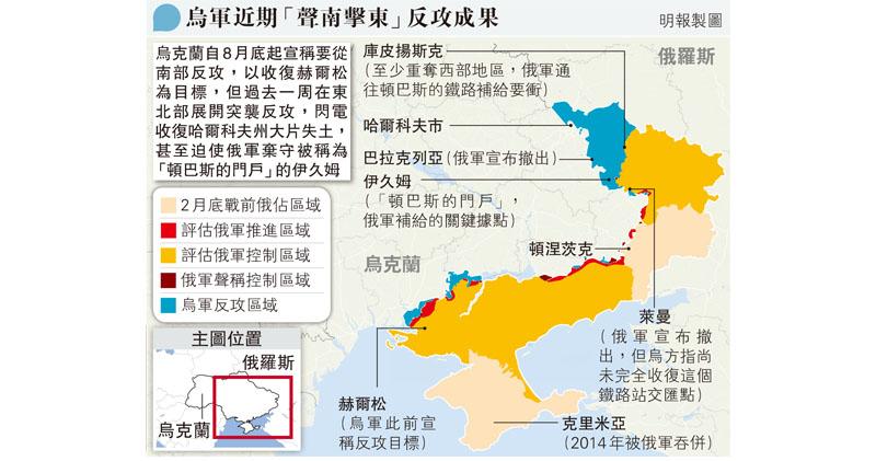 【军事重点】在俄軍過去一周於烏克蘭東北部明顯潰退後,俄羅斯內部開始有更多面對現實的聲音。國內戰爭博客以至政治人物開始談論戰事失利,重點質疑俄羅斯國防部以至軍隊高層的指揮和統兵表現。部分反戰者更將矛頭指向俄羅斯總統普京,逾40名地方民選官員周一發表聯署要求他下台。雖然分析相信迴響有限,但有執政黨國會議員接受美國媒體訪問,指倘俄羅斯內部的跨政治光譜批評聲音過火,或終會引發難以預料的後果。