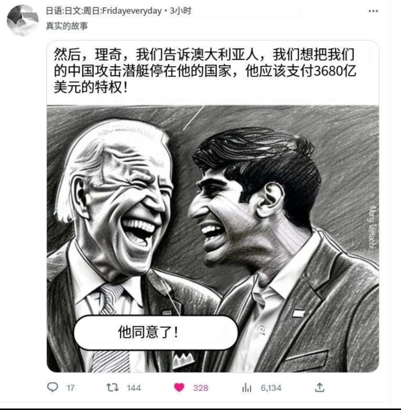 今后的30多年会经历许多政府更迭,AUKUS会是“澳酷死”还是“澳哭死”还需时间考验。吃瓜群众还须耐心端坐小凳默念增广贤文里的那句“常将冷眼观螃蟹,看你横行得几时”。
