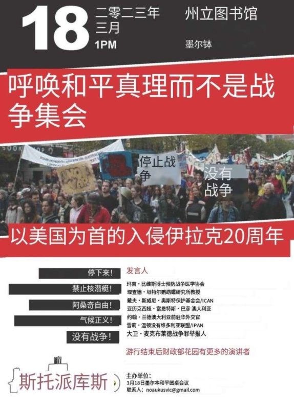 3月18日,墨尔本民众举行反战反核示威游行
